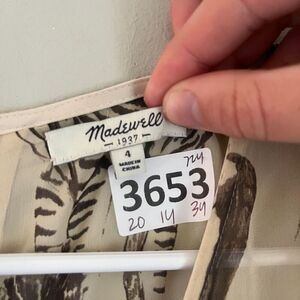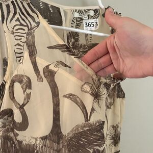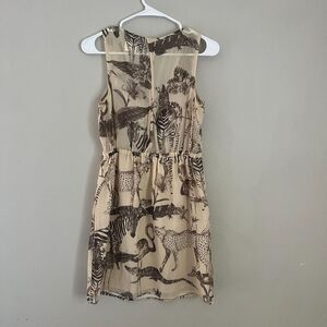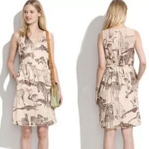 Madewell Womens Ivory Safari Silk Dress 4 Midi Sleeveless V-Neck Elephant Zebra