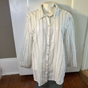 Madewell Lightweight Striped Long Open Cardigan Size M In Ivory and Navy Blue