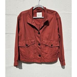 Madewell Womens Jacket Small Rust Orange Button Front Bayview Sleeve Bomber Coat