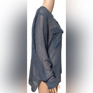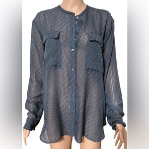 Madewell Womens Large Blouse Sheer Gray Clip Dot Textured Button Front Shirt Pocket Top