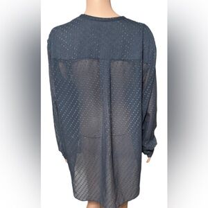 Madewell Womens Large Blouse Sheer Gray Clip Dot Textured Button Front