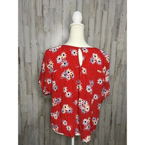 Madewell Women's Large Floral Cropped Blouse Red V-Neck Short Sleeve