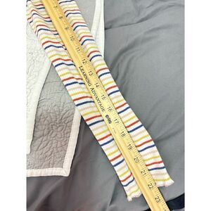 Cute long-sleeve ribbed top from Madewell with blue, pink, rust, and a shimmery gold-colored striping. Excellent pre-owned condition, size large. Please see photos for measurement information and detail.