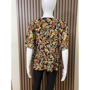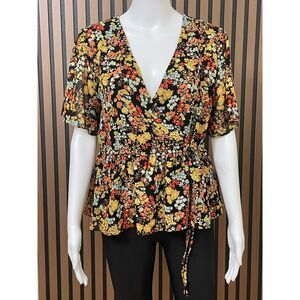 Madewell Women's M Yellow Blouse Polyester Top Floral Peplum Wrap Boho V-Neck