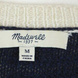 Madewell Women's Medium Blue Cream Linen Blend Raglan Sleeve Scoop Neck Sweater