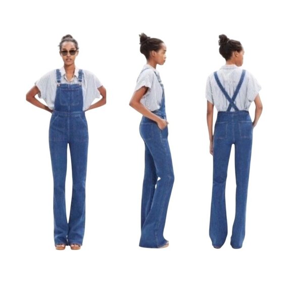 Madewell Women’s Medium Flea Market Flare Overalls in Rita Wash denim Jean f0343