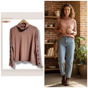 🌿Madewell Women's Medium Mauve 100% Cotton Boho Chic Button-Sleeve Sweater