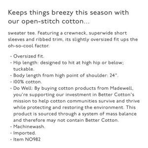 Madewell Womens Open-Stitch Cotton Sweater Tee XS Ivory NO982 NWT