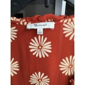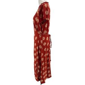 Madewell Women's Orange Daisy Daydream Ruffle Wrap Midi Dress Size Large
