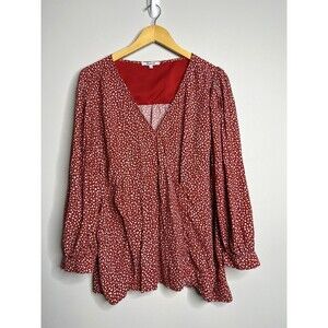 Madewell Womens Overture To In Ditsy Floral Red Plus Size 3X Blouse Dainty