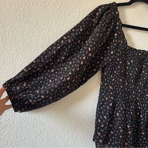 Madewell Women’s Peasant Smock Blouse Sz 4 Black Dixie Floral Print Cottage Core Prairie in great condition/ puff sleeves