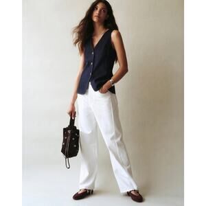 Madewell Women's Pieced Barrel-Leg Jeans NV710 Tile White + Rigid Size 28P NWT