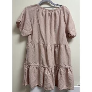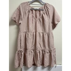 Madewell Women's Pink Tiered Mini Dress Size M Linen Blend Short Sleeve Pockets
