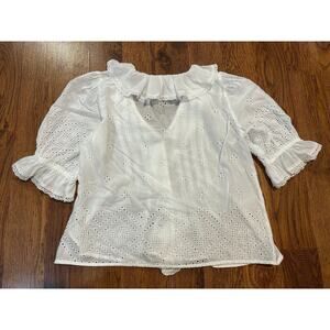 Madewell Women's Pintuck Ruffle Puff Sleeve Cotton Top – White – Size Small