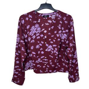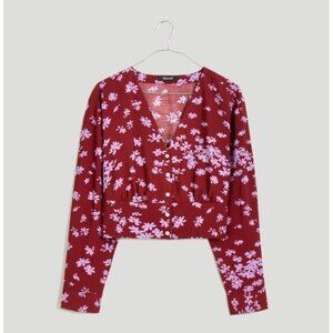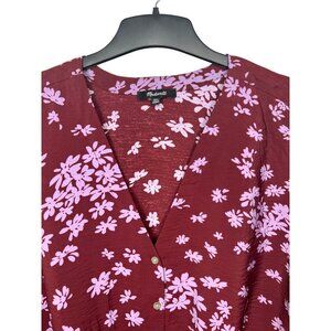 This flowing and feminine top from Madewell is crafted with a soft viscose blend, featuring a delicate floral pattern in rich burgundy and lavender tones. Its flattering V-neckline, long sleeves, and cinched waist design provide style and comfort, making it a versatile wardrobe essential.
