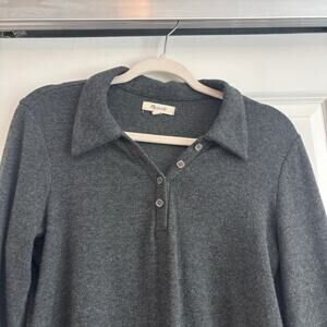 Madewell Women’s Plush Ribbed Polo Shirt Gray Sz M Essential Basic Closet Staple