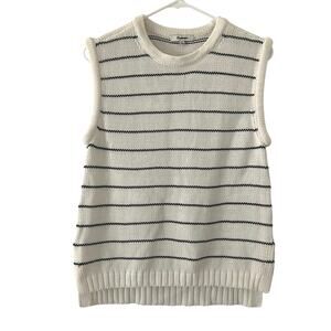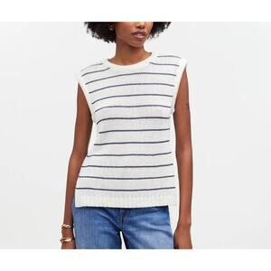 Madewell Women's Puff Trim Sweater Vest in Navy Stripe Relaxed M Medium New