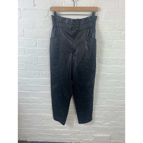 Madewell Women's Pull-On Paperbag Pant Vegan Faux Leather Black Size 4