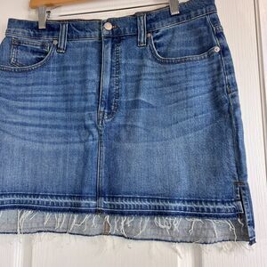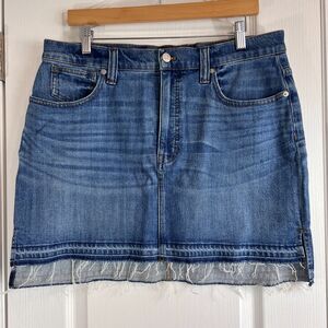 Madewell Women's Raw Step Hem Denim Short Straight Skirt Stretch Cotton Size 31
