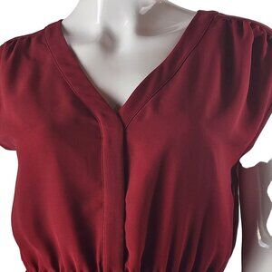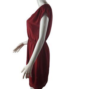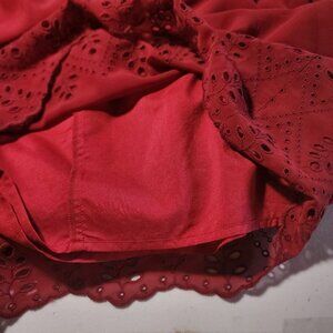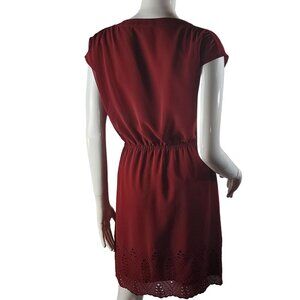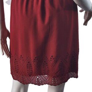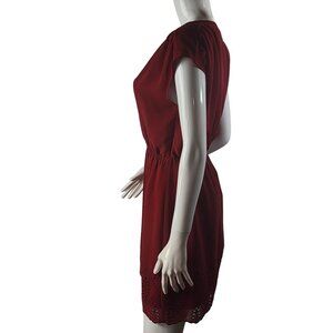 Madewell Womens Red V-Neck Dress Size 0 Embroidered Hem Polyester/Cotton