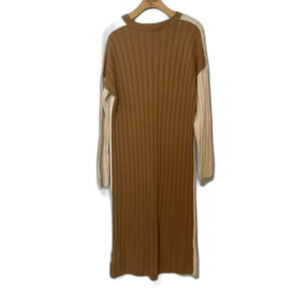 Madewell Womens (Re)sourced Ribbed Midi Sweater Dress Size Medium Antique Cream Long Sleeve Cream Tan Oversized Wool Alpaca Viscose