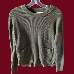 This ribbed sweater offers a cozy feel for cooler days. With front pockets and a classic crewneck, it combines practicality with effortless style.is in excellent condition from smoke and pet free home