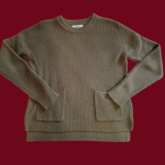 This ribbed sweater offers a cozy feel for cooler days. With front pockets and a classic crewneck, it combines practicality with effortless style.is in excellent condition from smoke and pet free home