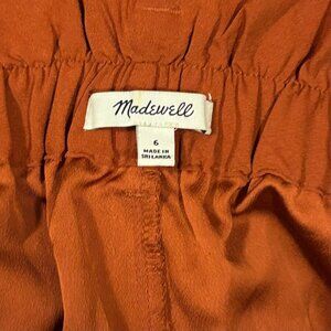 These paperbag waist shorts by Madewell offer a tailored fit and a chic silhouette. The rust color and tie belt bring a refined, modern touch.
