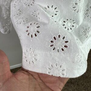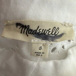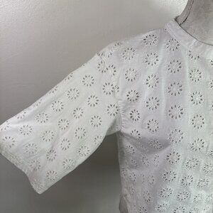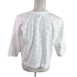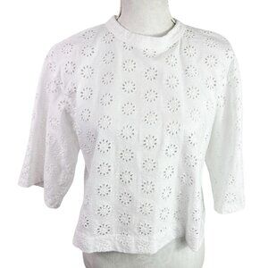 Madewell Women's S Boxy Wide Sleeve Embroidered Eyelet Tee White Crew NWT