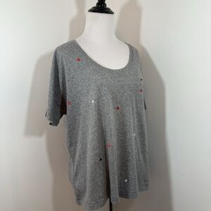 Madewell Women's S U-Neck Embroidered Tee T-Shirt Gray Cotton Viscose Poly