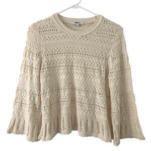 Madewell Women's Scalloped-Trim Knit Crop Pullover Sweater Tee Sand Cream M New
