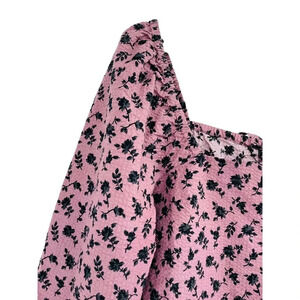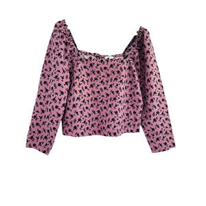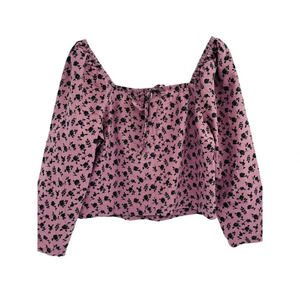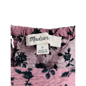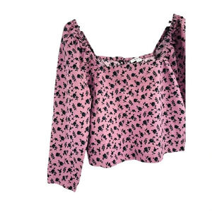 Madewell Women's Shirt S Seersucker Square Neck Floral Blouse Long Sleeve Crop