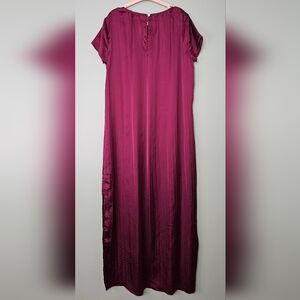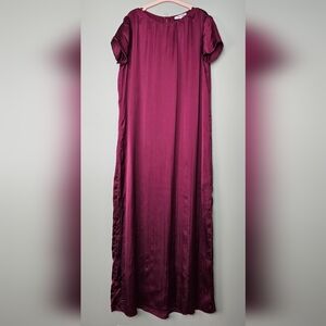 Madewell Women's Short-Sleeve Silky Slip Midi Dress in Plissé, Dark Red, XS NWOT