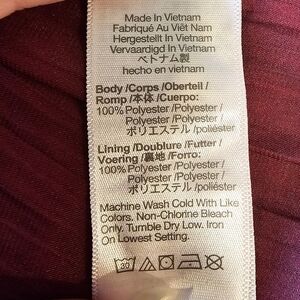 100% Polyester. Sheath. Short sleeves. Boat neck. Back button closure.
