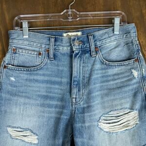 Madewell Womens Shorts Blue Denim Relaxed Mid Length Distressed 100% Cotton 25