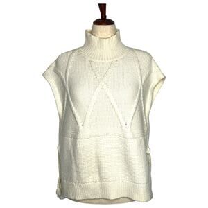 Madewell Women's Side Tie Sweater Vest M Cream Turtleneck Merino Wool Alpaca