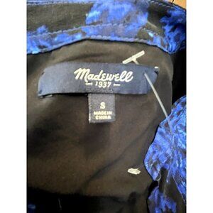 Madewell Women's Silk Shift Dress, Royal Blue & Black, Long Sleeves, Small