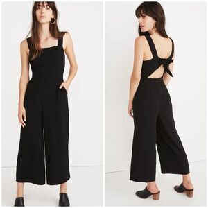 Madewell Womens Size 12 Apron Bow Back Jumpsuit Wide Leg Black Relaxed Fit