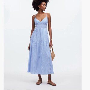 Madewell Womens Size 12 Empire-Waist Tiered Maxi Dress in Stripe Coastal Boho