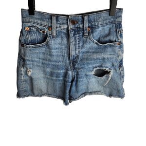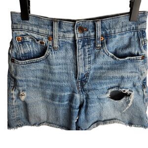 Madewell Womens Size 23 High Rise Denim Shorts Jordie Wash Raw Hem Distressed