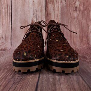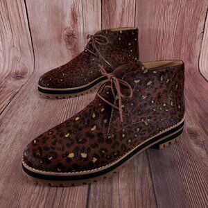 Madewell Womens Size 9 The Wren Boots Painted Leopard Calf Hair Lace Up MA484