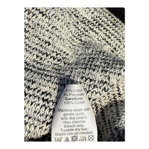 Discover the effortless charm of the Madewell Black Pullover Sweater, a versatile addition to any wardrobe. This women's sweater, crafted from a soft blend of cotton and polyester, features a classic crew neck and short sleeves, making it perfect for layering or wearing on its own. The solid black knit design is accented with stylish black trim, adding a touch of sophistication to your look. Ideal for casual outings, workdays, or cozy evenings at home. This pre-owned piece is machine washable for easy care.