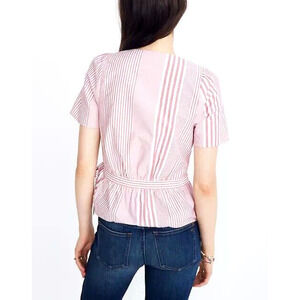 Madewell Womens Size Small Ruffle Hem Wrap Top Blouse Tie V Neck Striped Red