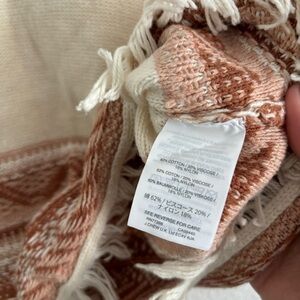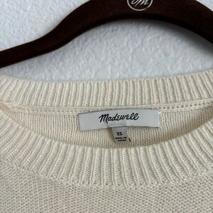 Elevate your wardrobe with this stunning Madewell sweater top. The ivory color and fringe accents make it a perfect addition to any outfit. The crew neckline and short sleeves provide a comfortable fit for any occasion. This sweater is made of a cotton blend material and is hand wash only.