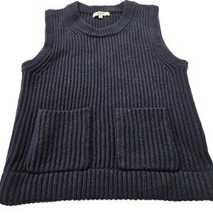 Madewell Women's Size XS Merino Wool Ribbed Sweater Vest Pockets Navy