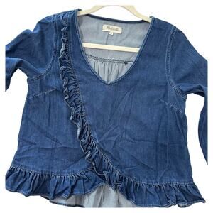 Madewell Womens Size(S) Blue Denim Ruffle Detail Cotton Blouse Top Cropped