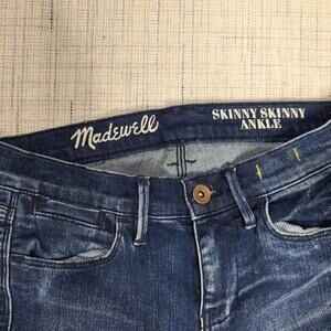 Madewell Skinny Skinny Jeans - Ankle Zip. Five Pocket Style. Excellent Used Condition. Medium Wash with Whiskering. 93% Cotton, 6% Polyester, 1% Spandex