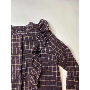Madewell Women's Small Metallic Plaid Ruffle Button Front Blouse Wool Blend