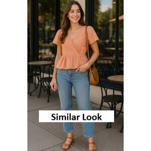 Feminine and effortlessly chic, this Madewell peach blouse is a versatile addition to any wardrobe. Designed with short sleeves, a subtle V-neckline, and a flattering peplum hem, this lightweight cotton blouse adds a touch of romance to casual or dressed-up outfits. The embroidered texture gives it a timeless, artisanal feel. Perfect for spring and summer wear, or layered under a jacket in cooler months.