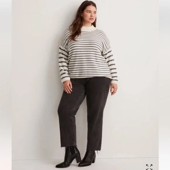 Madewell Womens Stripe Play Mock Pullover Sweater 1X Wool Blend NWT Plus